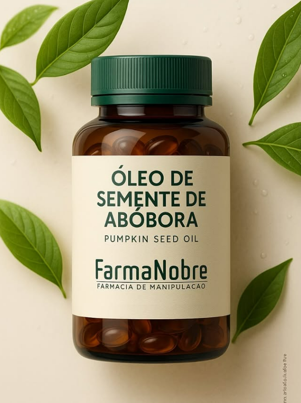 Óleo de Semente de Abóbora: Concentrado em ácidos graxos insaturados (principalmente Ômega 6 e Ômega 9), vitaminas lipossolúveis (como a Vitamina E), carotenoides e zinco. Sua função principal está associada à inibição de uma enzima que participa do aumento da próstata, auxiliando no alívio dos sintomas da Hiperplasia Prostática Benigna (HPB). Possui também potente ação antioxidante e anti-inflamatória.